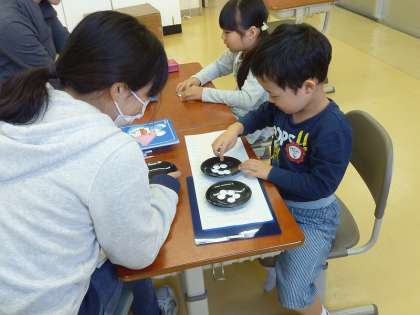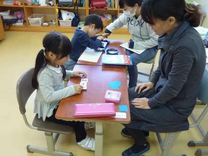 碁石を使って考えたり、数字のカードを使って式を作ったりしています。