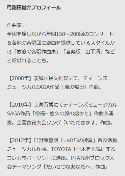 11月13日(月)13:30から始まる「いのちと夢のコンサート」でお迎えする、弓削田健介さんのプロフィールです。