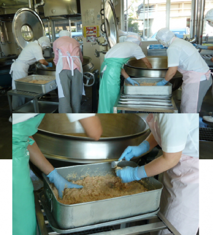 つくね汁の肉団子は、調理員さんの手づくりで、一つ一つ肉団子を作ってくれました。