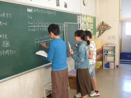 反比例のグラフを書くために、商を10分の1の位まで求める6年生。