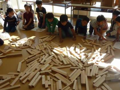 今年も地域の方に木っ端をいただき、図工の材料にしています。