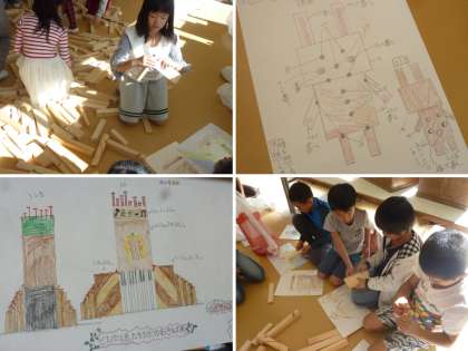 3年生は、設計図をもとにして、木っ端を使った作品を制作します。