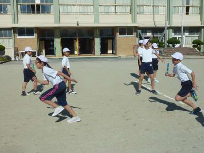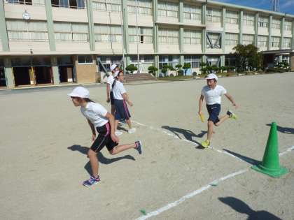 5年生が、ていくオーバーゾーンを意識して、バトンパスの練習をしていました。