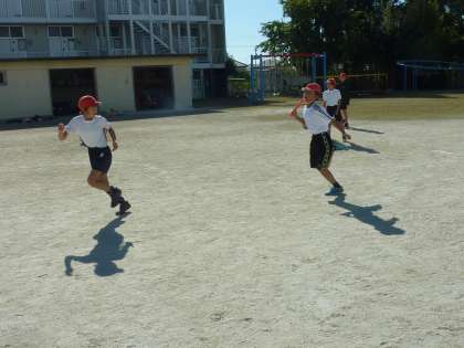 走ってきた子のかける声でスタートし、ベストなタイミングで受け渡すことができるよう頭を使っています。
