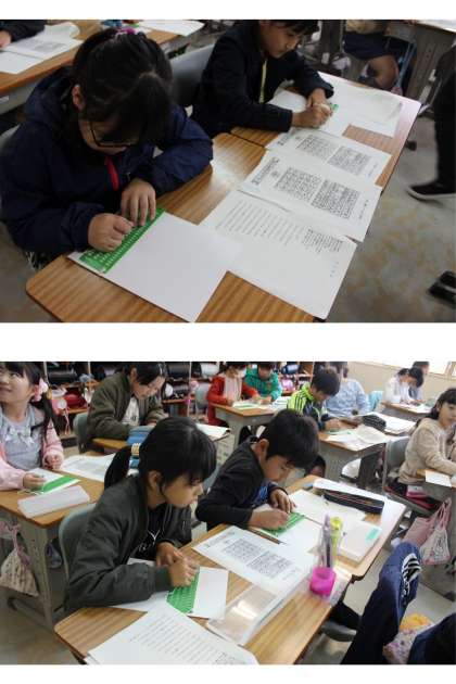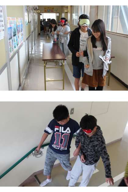4年生は点字、6年生は目隠しでの歩行の実践を行いました。