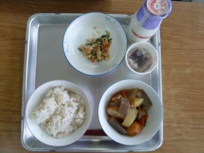 麦ごはん、関東煮、五色あえ、牛乳、納豆でした。