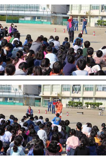 本日の2時間目に瀬戸市消防本部の方に来ていただき、火災の避難訓練を実施しました。