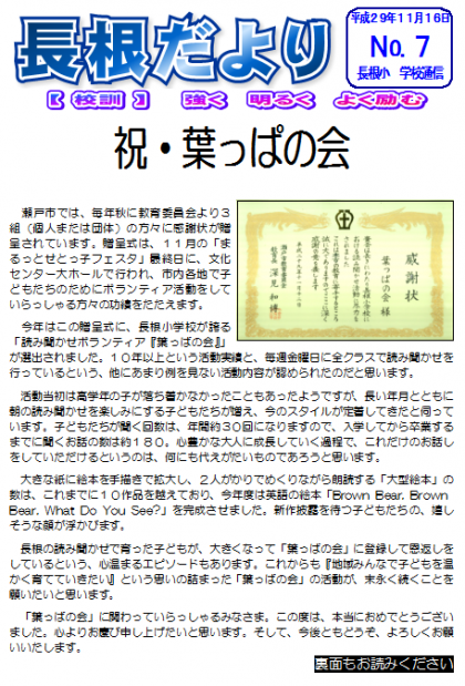 長根小学校いじめ防止基本方針
