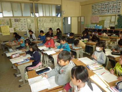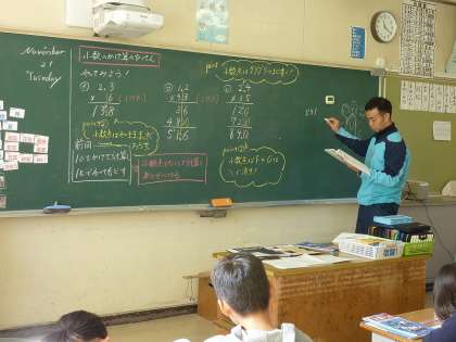 計算のポイントをまとめる4年生。
