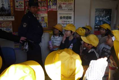 今回は、郵便局の中を見学したり、交番のお巡りさんのお話を聞くことができました。