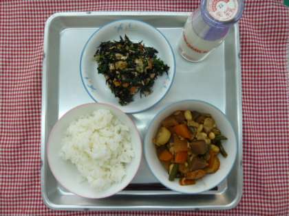 ごはん、鉄火みそ、千草あえ、牛乳でした。
