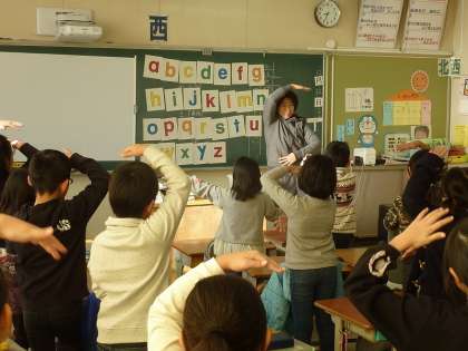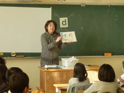 授業前の15分を使って、3年生が外国語活動を行っています。