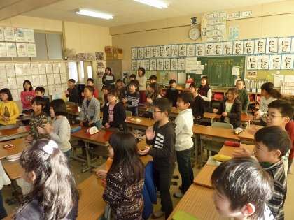 15分という短時間での外国語活動は、次年度の瀬戸市内の小学校で取り組まれるモジュール学習のスタイルです。