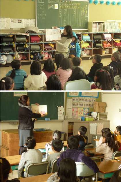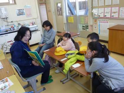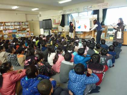 4年生は、子どもたちの大好きな「ぐりとぐら」の大型絵本を読み聞かせてもらいました。