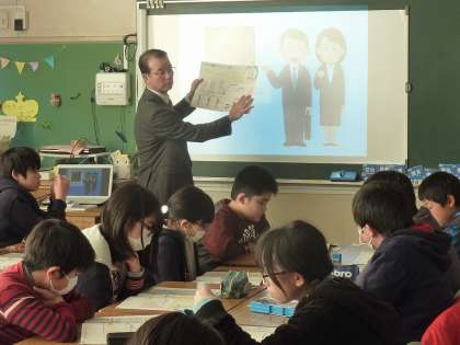 税金の仕組みについて、税理士の方から学ぶ6年生。
