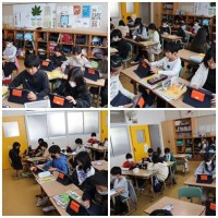 1年生の教室をのぞくと、黒板に「あさのしたく」についての表示がありました。