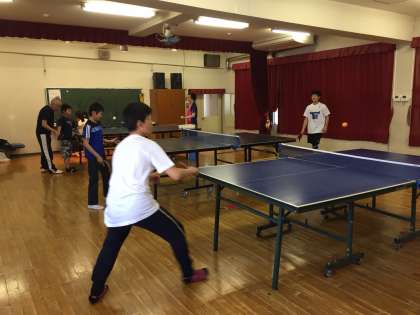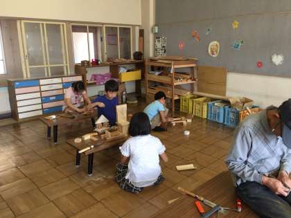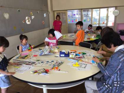 折り紙、木工、卓球など地域の方々と楽しく触れ合った子どもたち。