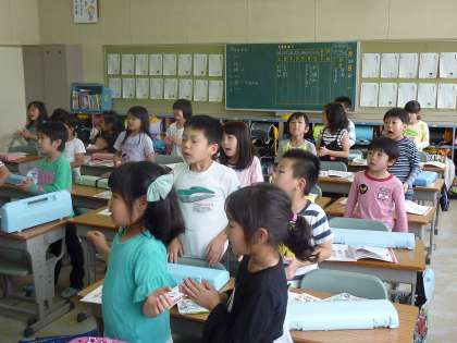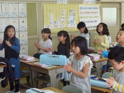 BINGOという名前の小犬の歌を歌う2年生。