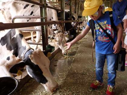 うさぎの心臓の音を聴診器で聞いたり、山羊や牛にえさをやったり、羊の毛刈りを見学したりと、動物とふれ合うひとときでした。