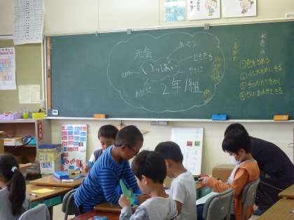 学級目標を決めて、掲示物作りに取り組む2年生。