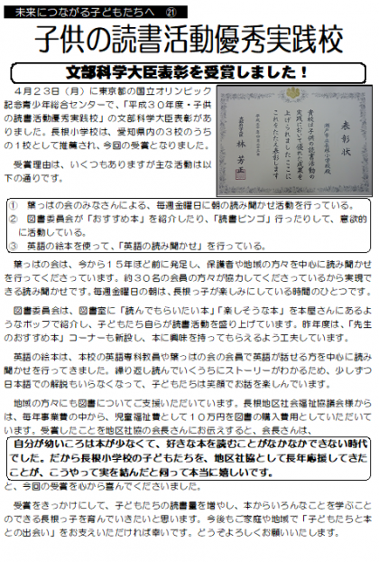 瀬戸市内小中学校 長根小学校所在地 後援事業配布チラシ(瀬戸市教育委員会)