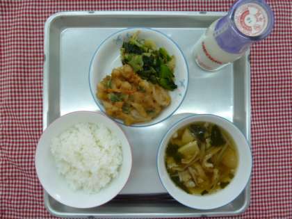 今日は、ごはん・牛乳・さわにわん・いんげんと干しえびのかき揚げ・おかかあえでした。