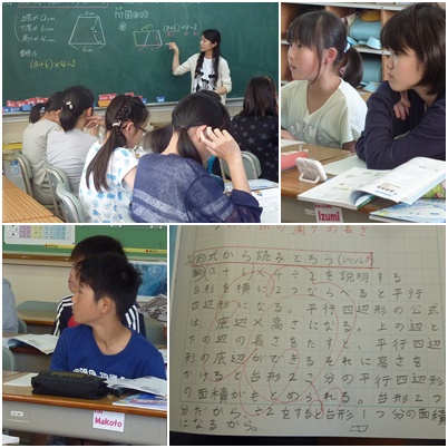 今日は、文字式を使って台形の面積の求め方を考えていました。