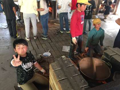 暑い暑いと言いながら、炉で火を使ってカレーわ作ります。