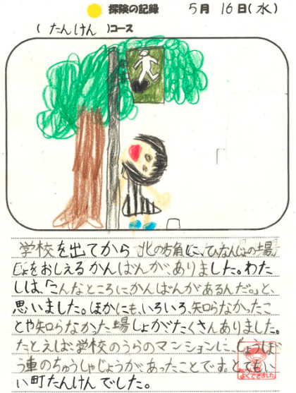 校区探検にでかけた3年生が書いた1枚のプリントです。