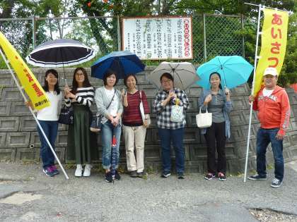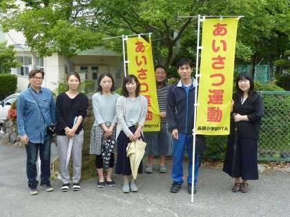 小雨がぱらつく中、PTA広報部のみなさんが、あいさつ運動を行ってくださいました。