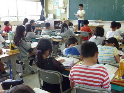 興味を持ったところを発表している4年生。