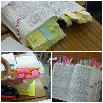 どうやら辞書を引いた言葉に付箋を貼っているようです。