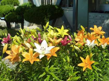 来賓玄関前に咲いている大きなユリの花。