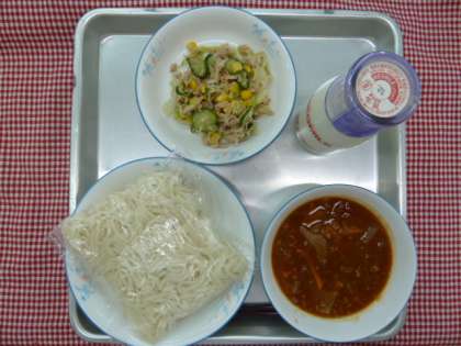 6月5日の給食 公開日 2018/06/05 更新日 2018/06/05 学校・学年ニュース 今日は、ソフト麺・ミートソース・ツナサラダ・牛乳でした。 ミートソースにソフト麺を入れて、ミートソーススパゲッティ風にして食べました。