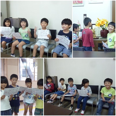 校長先生とお話しした後は、1年2組の先生手作りの「ぜっこうちょう」スタンプを押してもらえました。