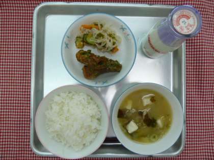 ごはん・たまねぎの白みそ汁・ちくわの磯辺揚げ・切り干し大根の甘酢あえ・牛乳でした。