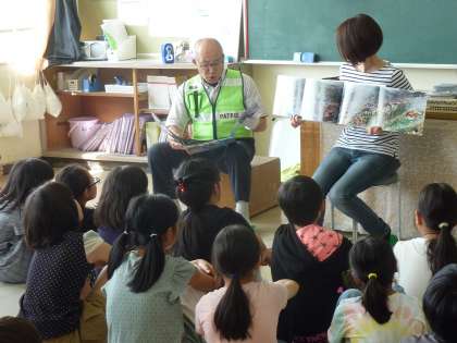 今日は5年1組で、防災の読み聞かせをしていただきました。