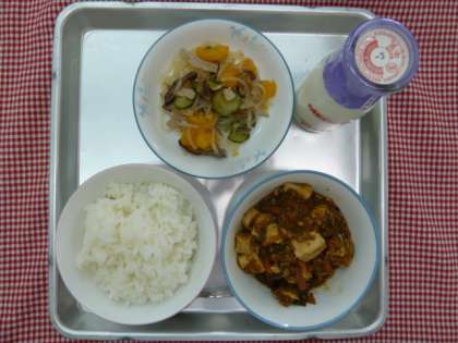 ごはん・マーボー豆腐・中華あえ・牛乳でした。