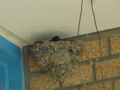 先日飛び立ったツバメの巣を見ると、一羽のツバメがじっとこちらを見ています。
