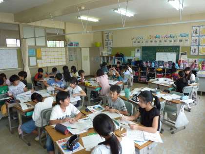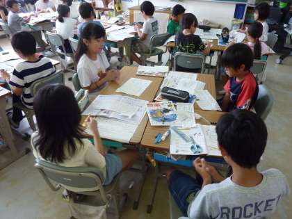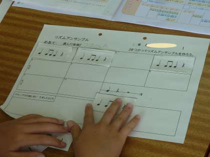 音符の書かれたカードを切り取り、枠の中に貼りつけていきます。