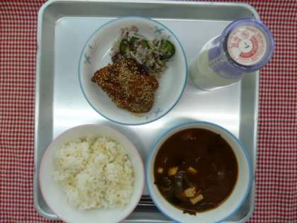 発芽玄米ごはん・わかめと豆腐のみそ汁・鶏肉のてりかけ・ゆかりあえ・牛乳でした。
