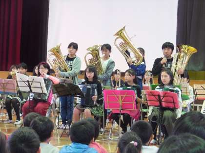音楽部は、楽器の紹介の後、みんなで演奏してくれました。