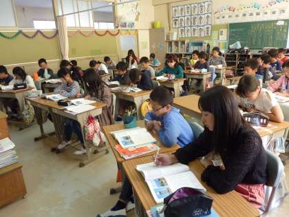 担任の先生は、のどの調子が悪そうでしたが、授業は無事に進みました。