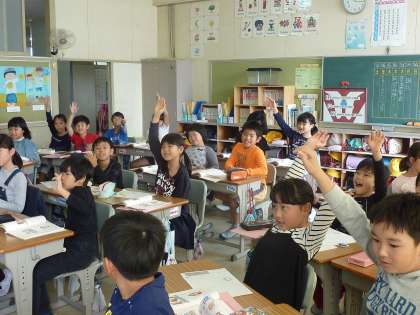 道徳で、やさしい人ってどんな人かを考える3年生。