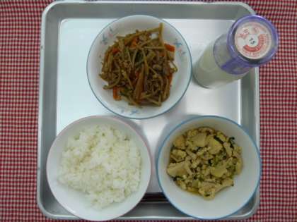 ごはん・きんぴらごぼう・卵とじ・牛乳でした。