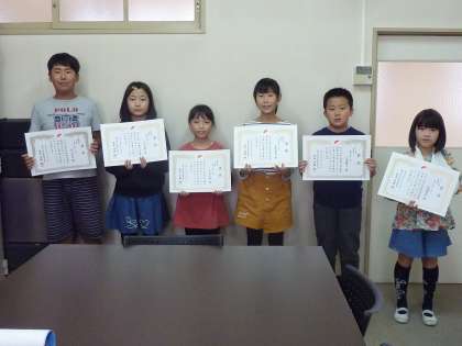 赤い羽根のポスターや書写のコンクールで入賞した児童を表彰しました。