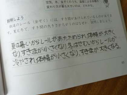 鉄道のレールの隙間が、夏と冬で違うのはなぜかを考える4年生。