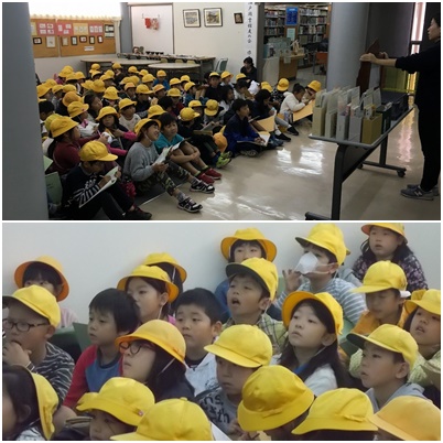 司書さんから、紙芝居を使って図書館はどんなところかを教えていただきました。