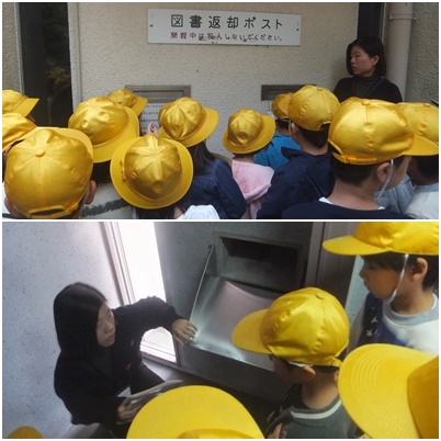 普段入ることのできない返却ポストの中や、事務室などにも入れてもらい、子どもたちはとても喜んでいました。