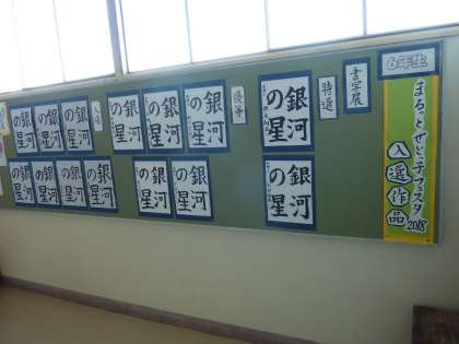 廊下の踊り場掲示板に、まるっとせとっ子フェスタ入賞作品を展示しています。